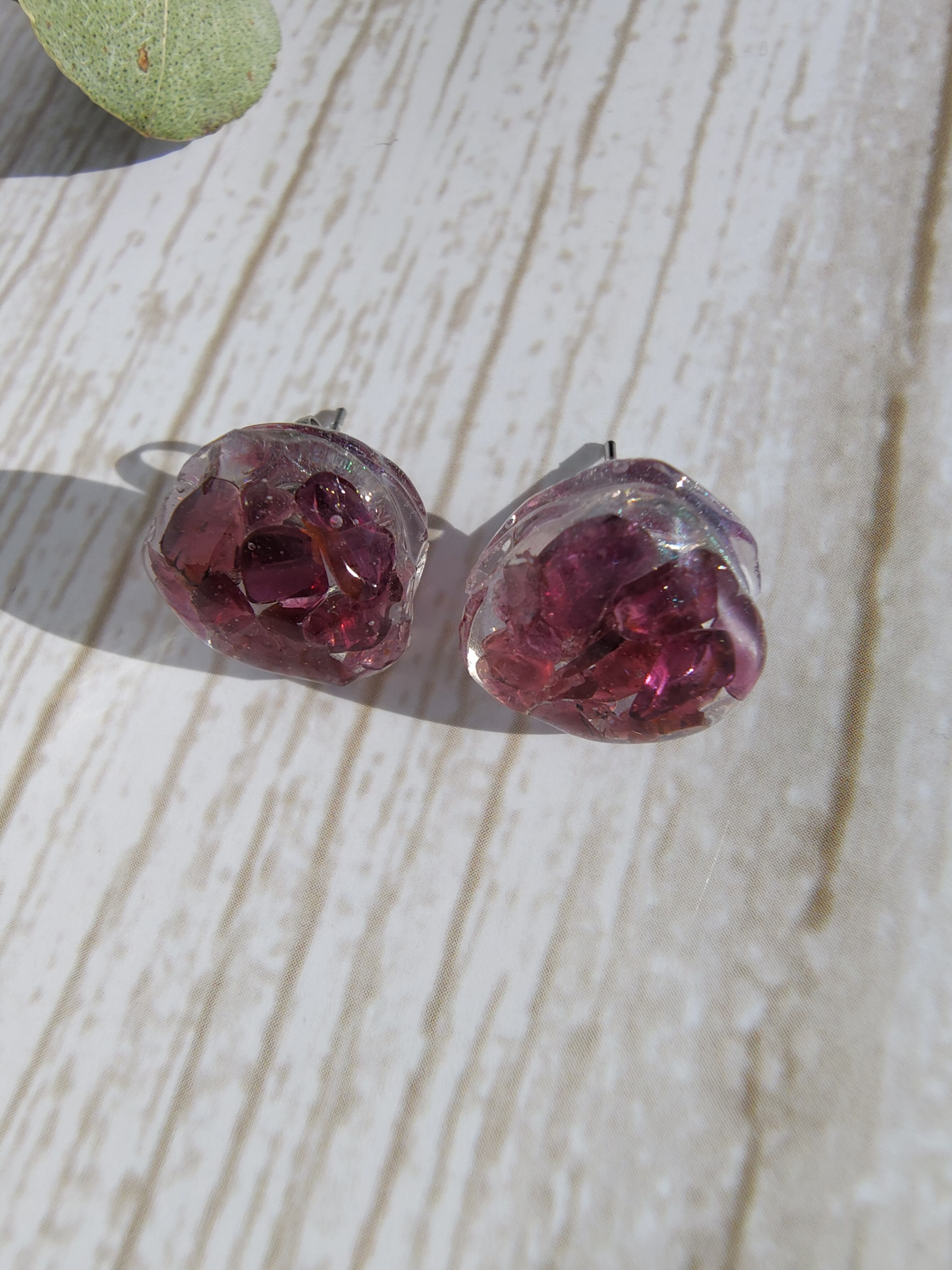 天然石ピアス~柘榴石(ガーネット)サージカルステンレスピアス ノンホールピアス 大人