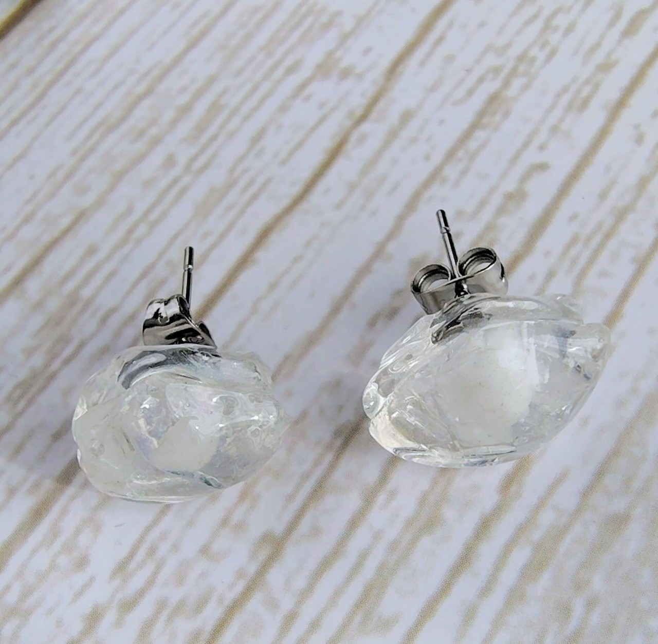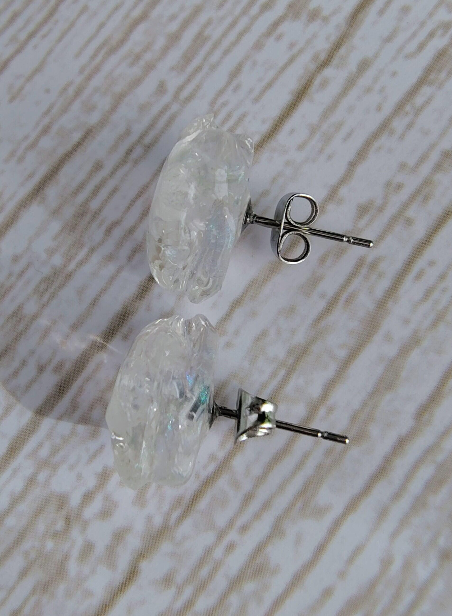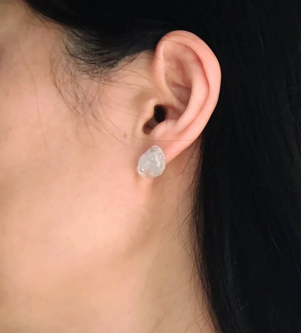 天然石ピアス~水晶(クリスタル)サージカルステンレスピアス ノンホールピアス 大人