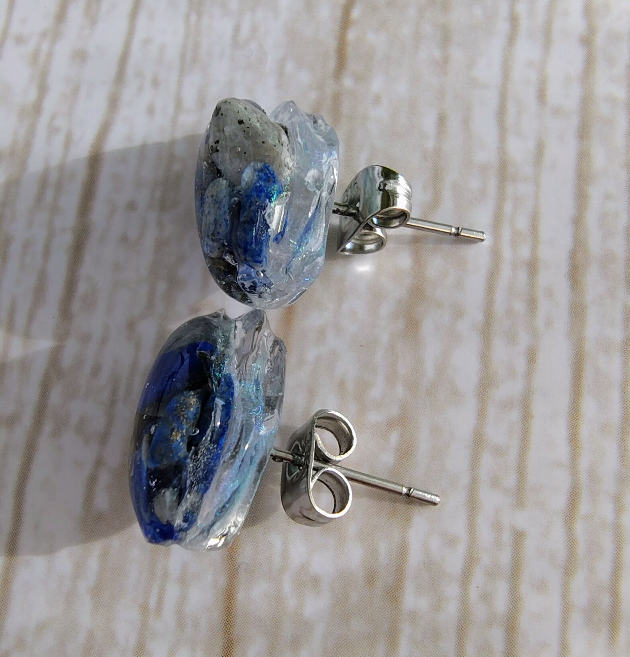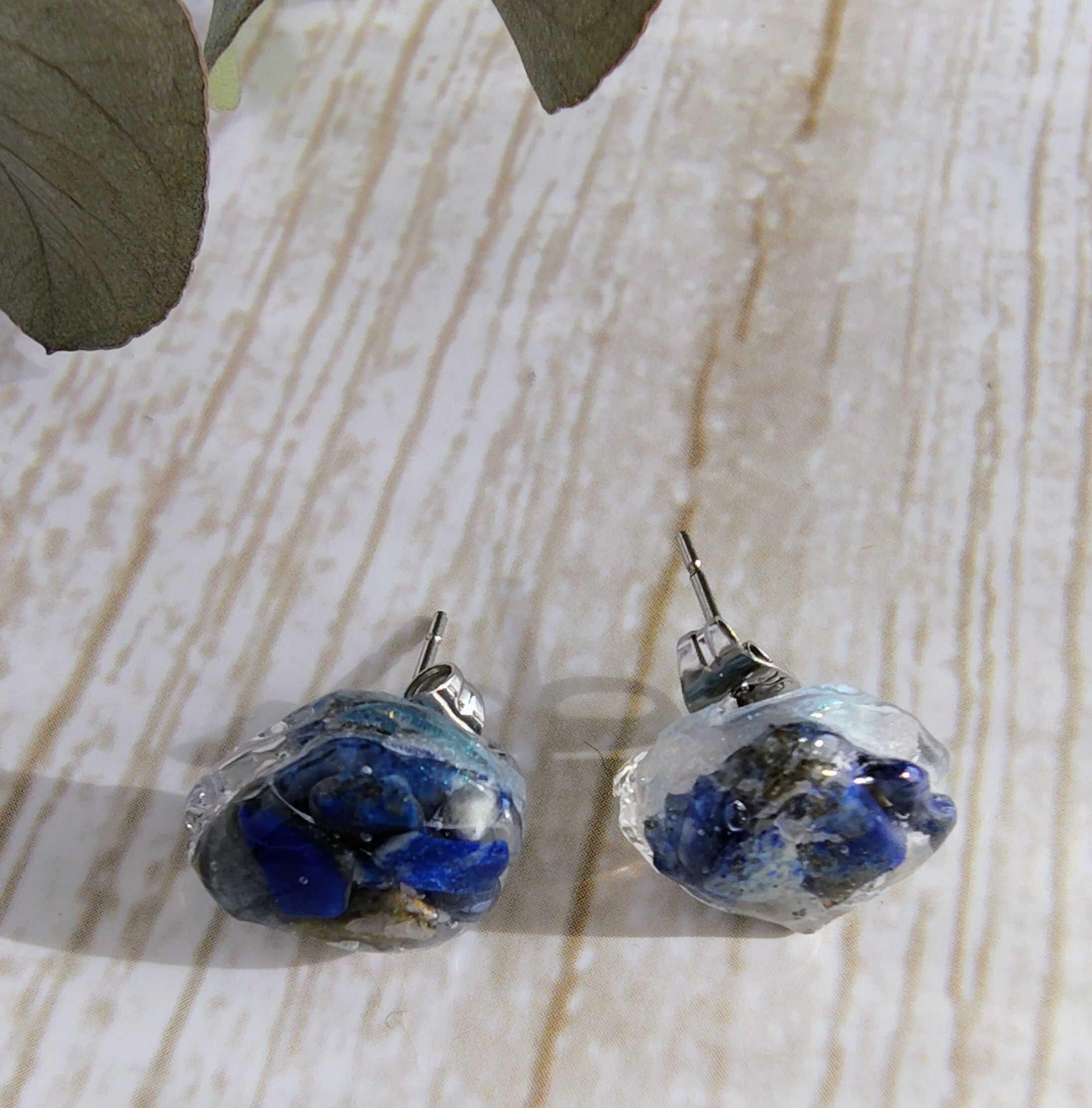 天然石ピアス~瑠璃(ラピスラズリ)サージカルステンレスピアス ノンホールピアス 大人