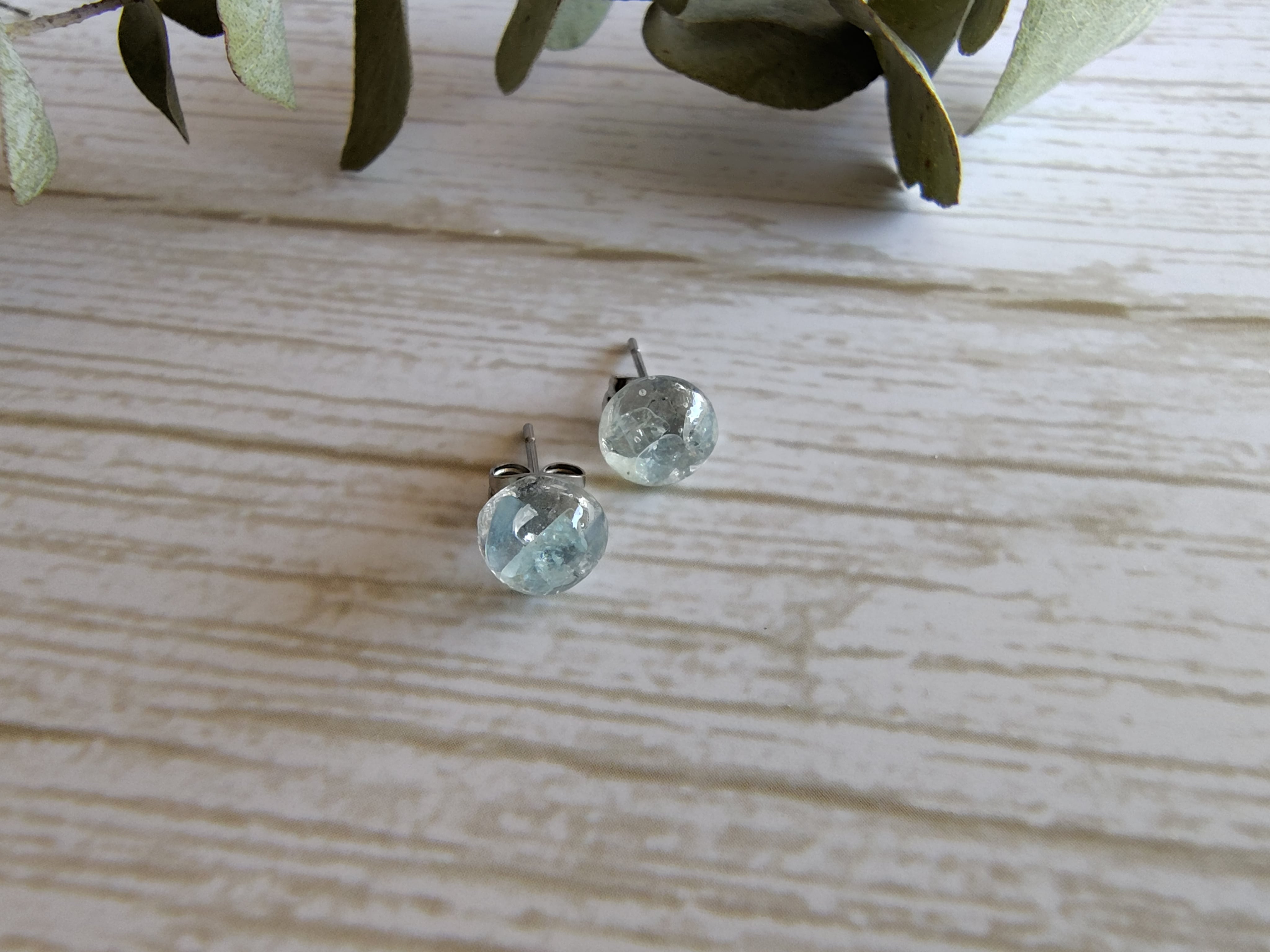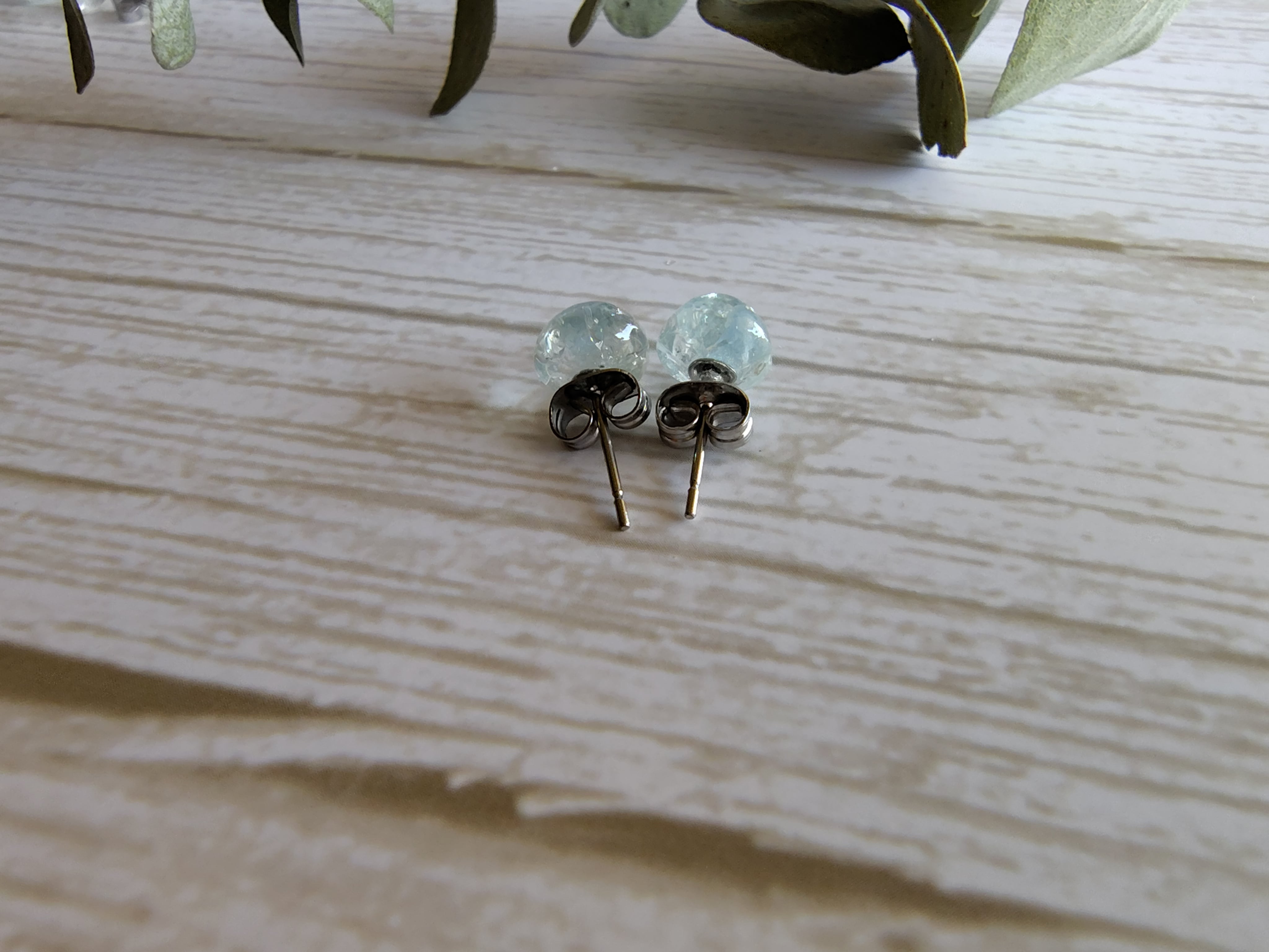 ミニ天然石ピアス~藍玉(アクアマリン)サージカルステンレスピアス ノンホールピアス 大人