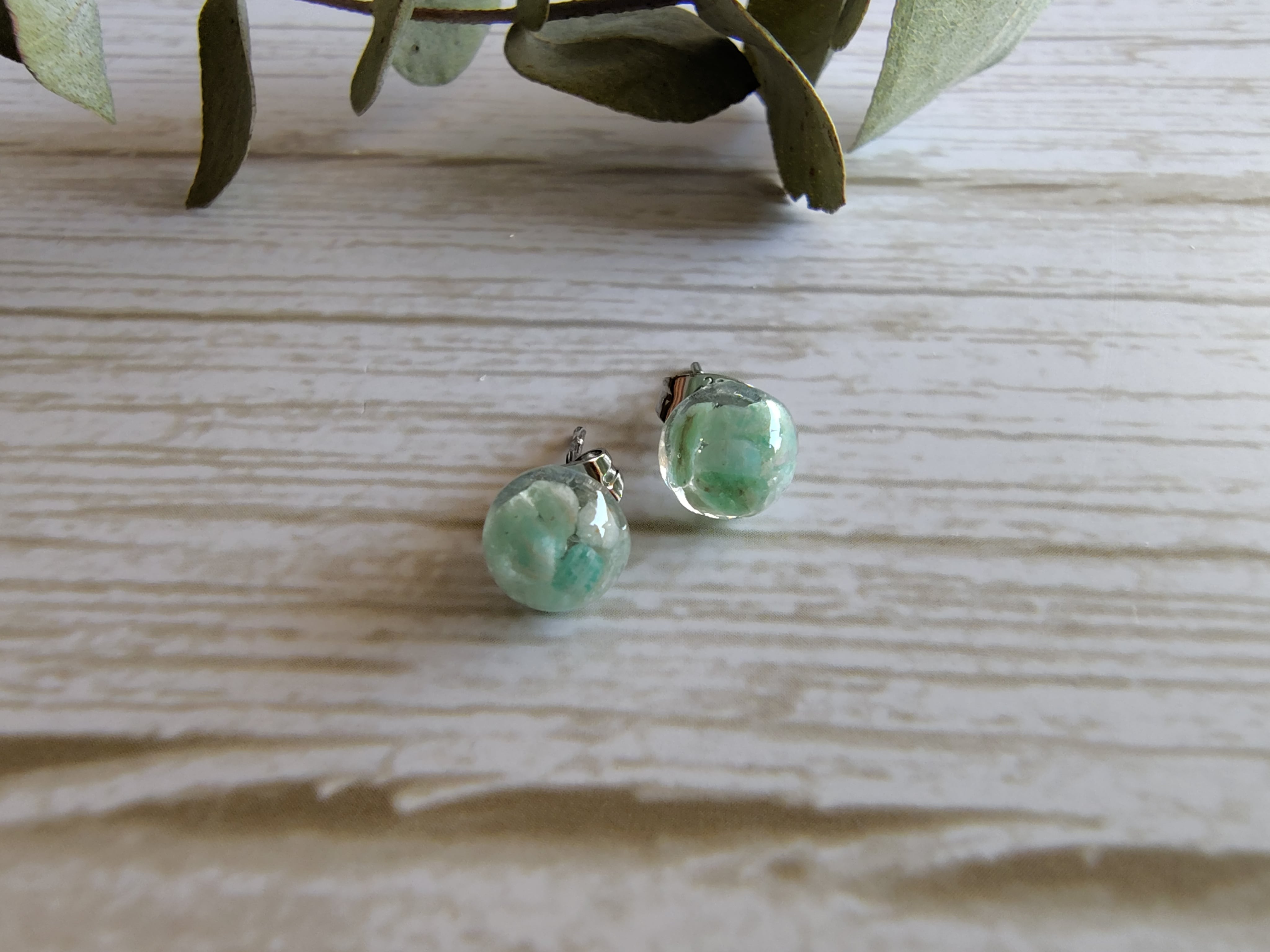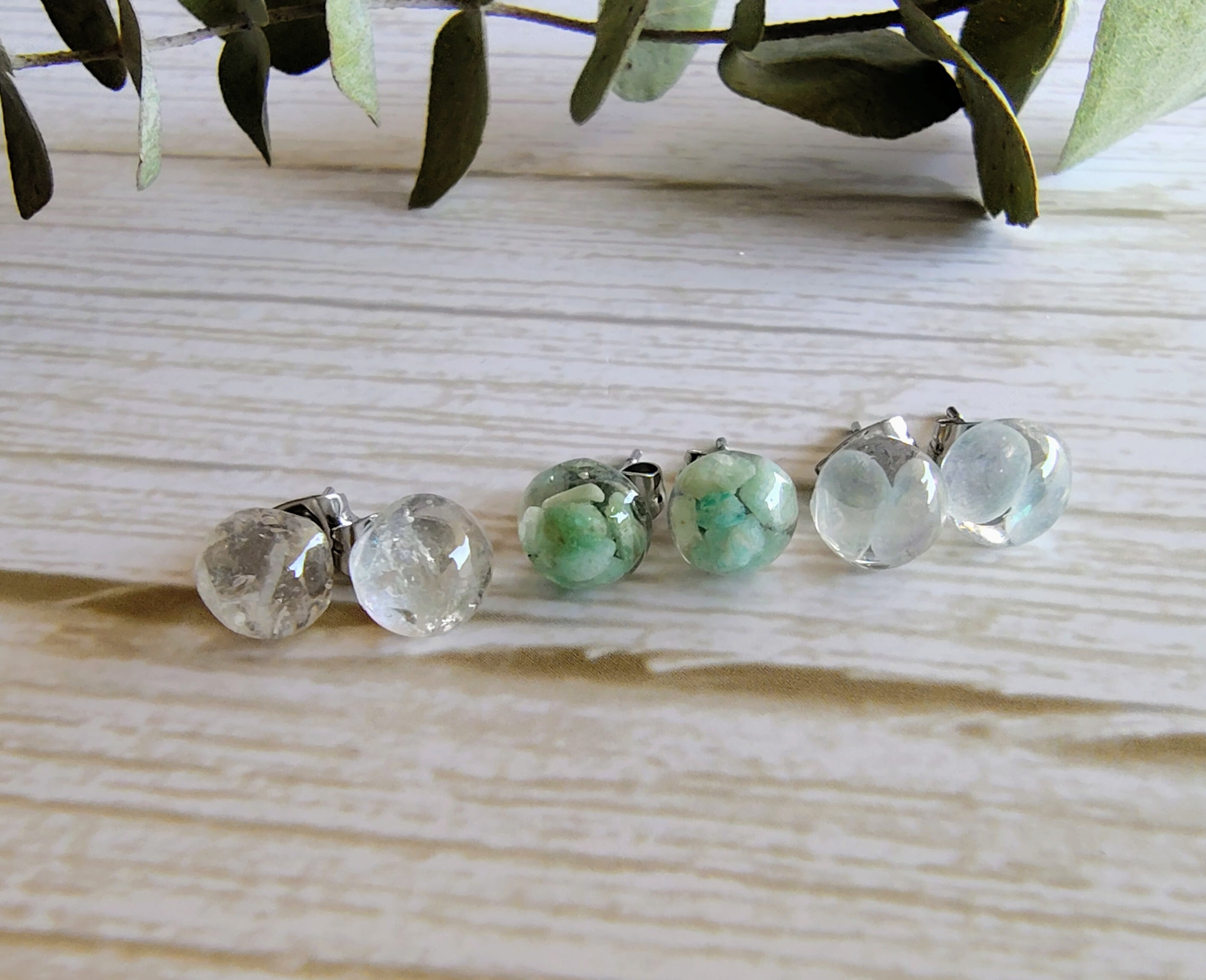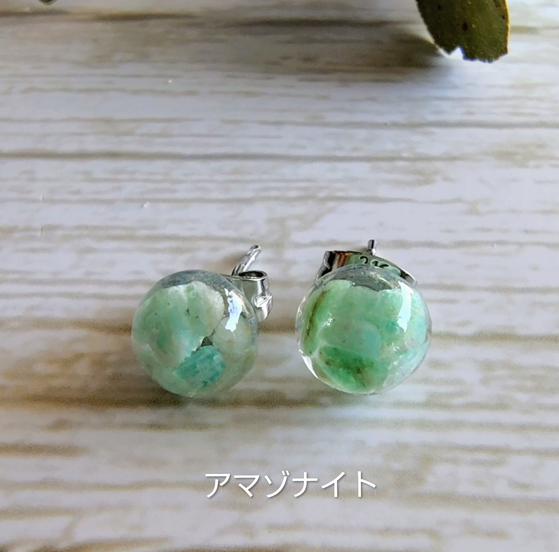 ミニ天然石ピアス~天河石(アマゾナイト)サージカルステンレスピアス ノンホールピアス 大人