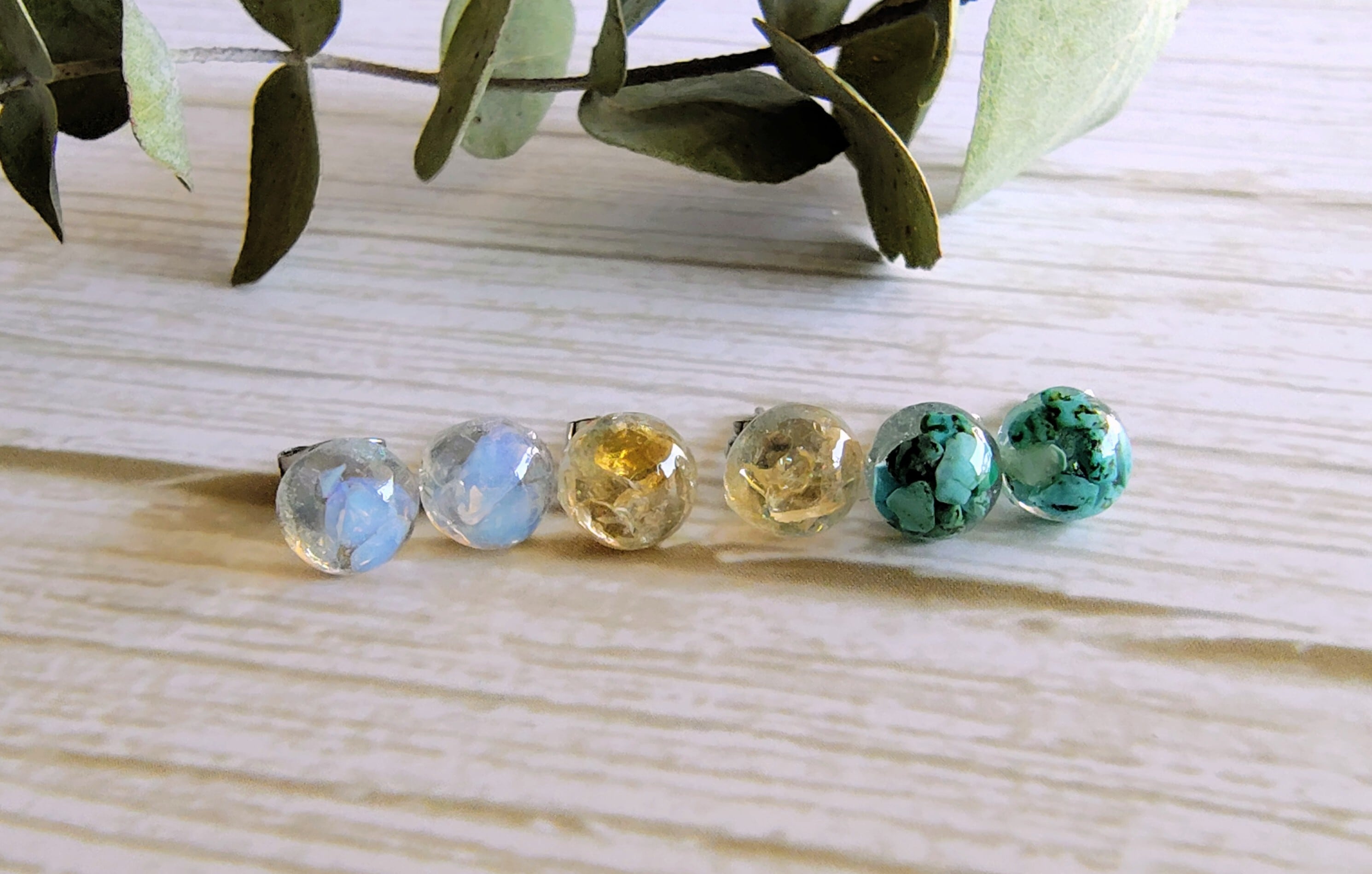 天然石をそっと閉じ込めた、やさしくきらめく大人のアクセサリーです。