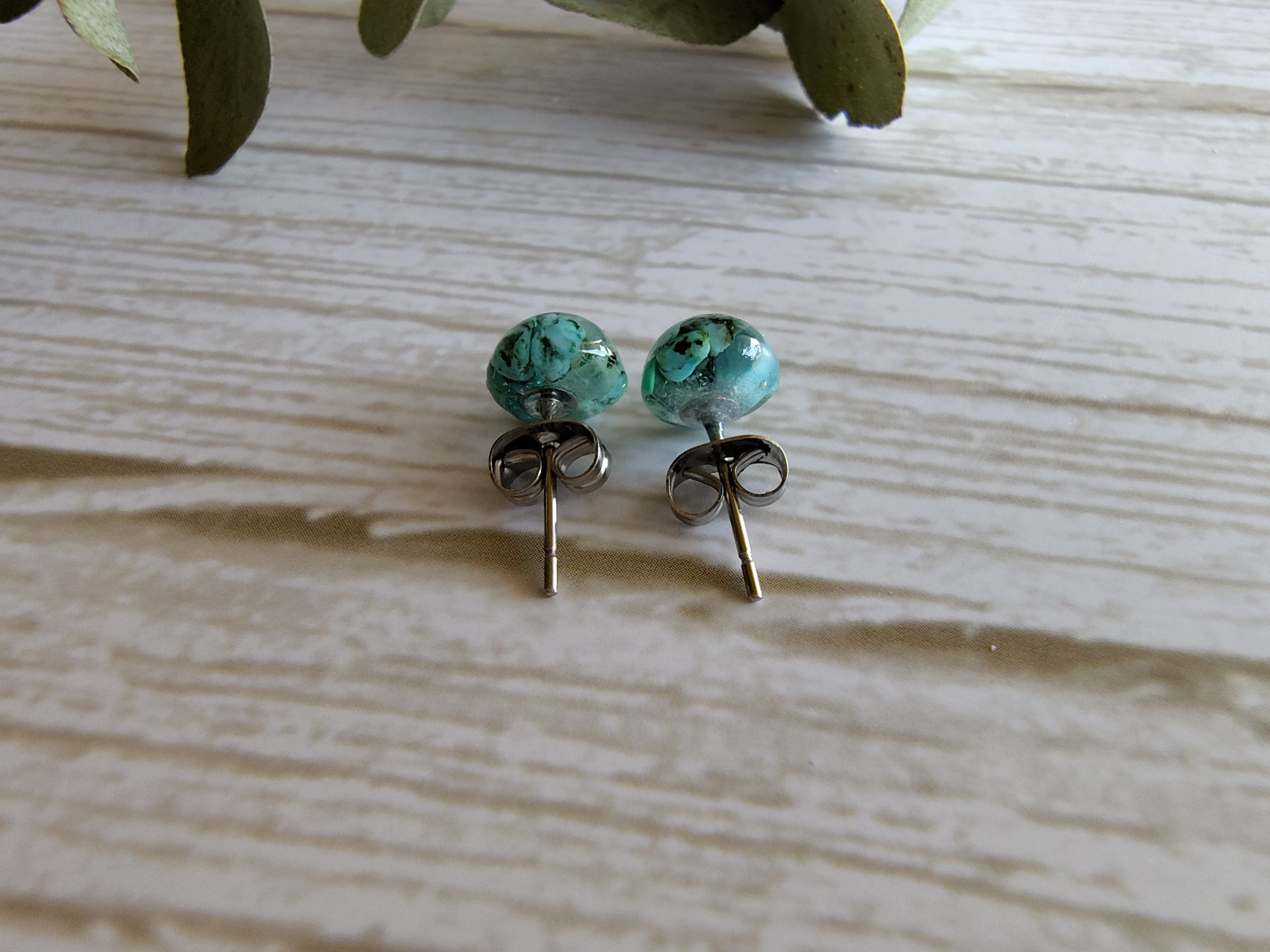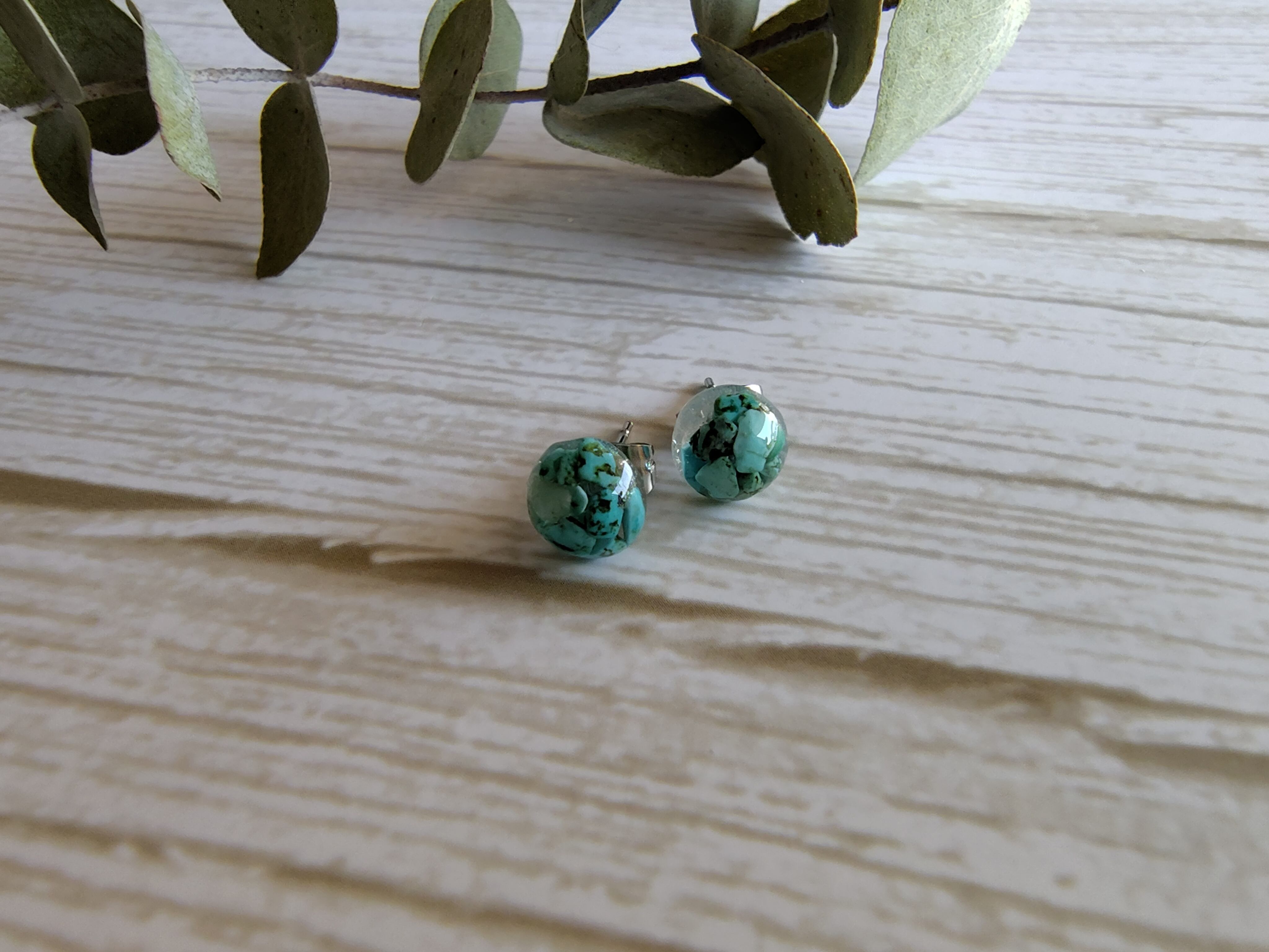 ミニ天然石ピアス~土耳古石(ターコイズ)サージカルステンレスピアス ノンホールピアス 大人